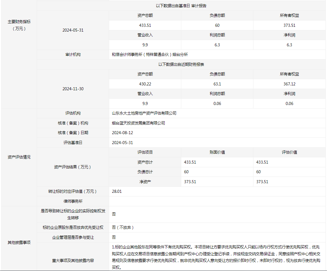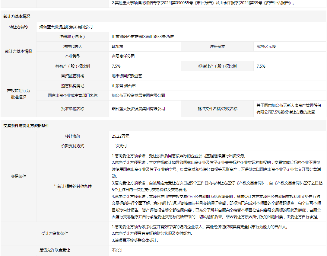 轉(zhuǎn)讓方:煙臺(tái)藍(lán)天投資控股集團(tuán)有限公司