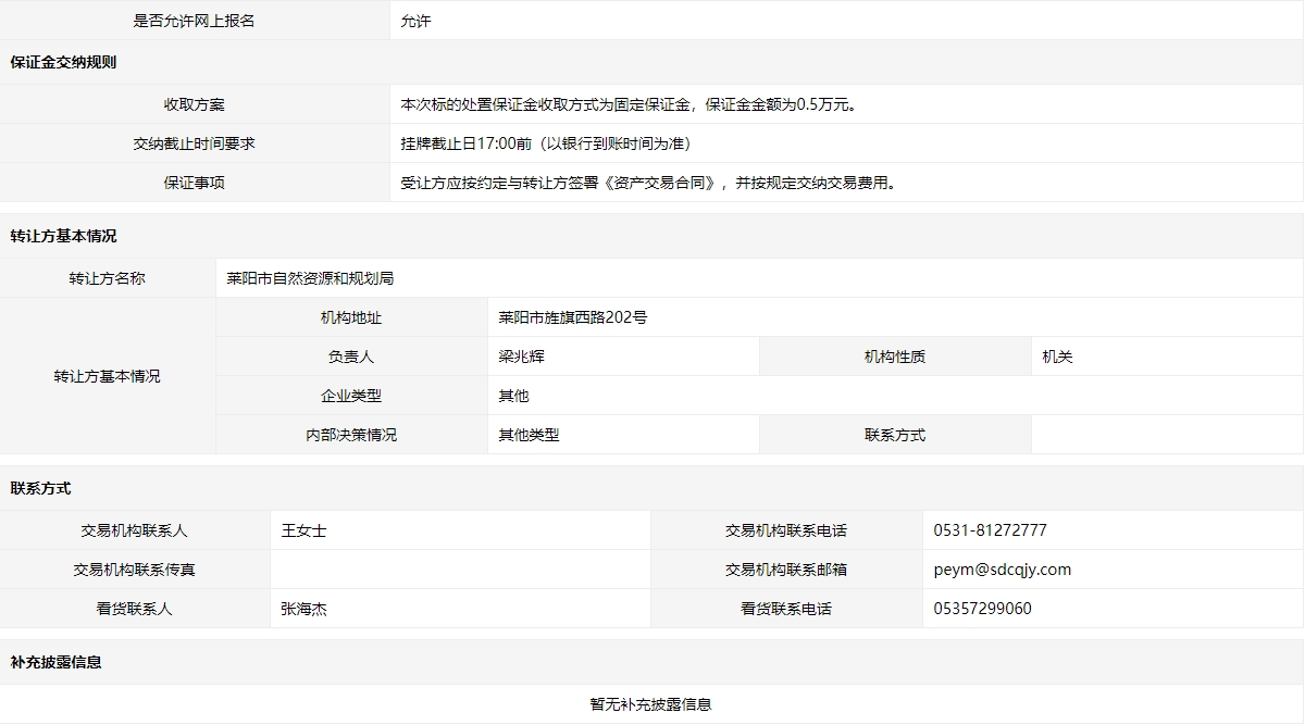轉讓方:萊陽市自然資源和規(guī)劃局