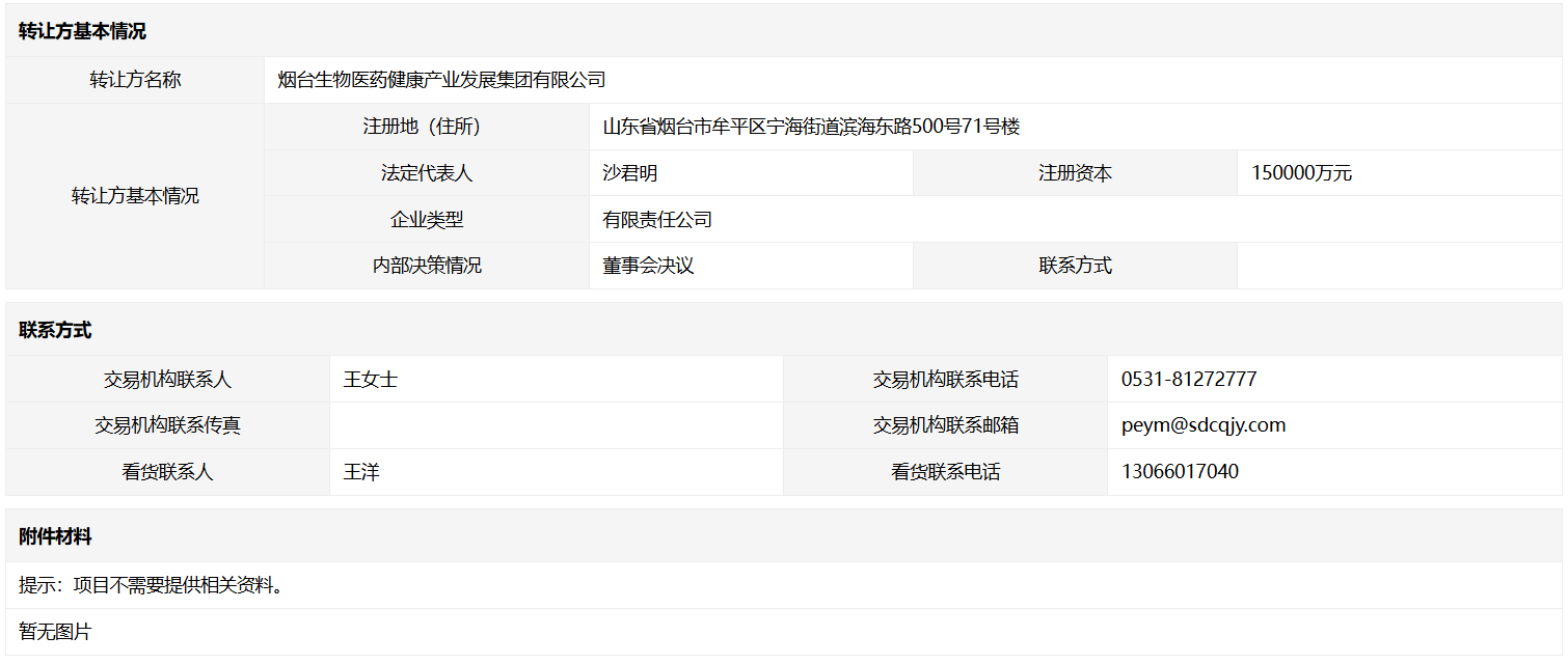 轉讓方:煙臺生物醫(yī)藥健康產業(yè)發(fā)展集團有限公司