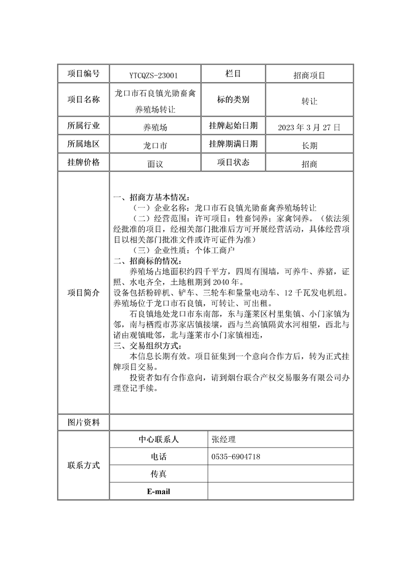 龍口市石良鎮(zhèn)光勛畜禽養(yǎng)殖場(chǎng)轉(zhuǎn)讓