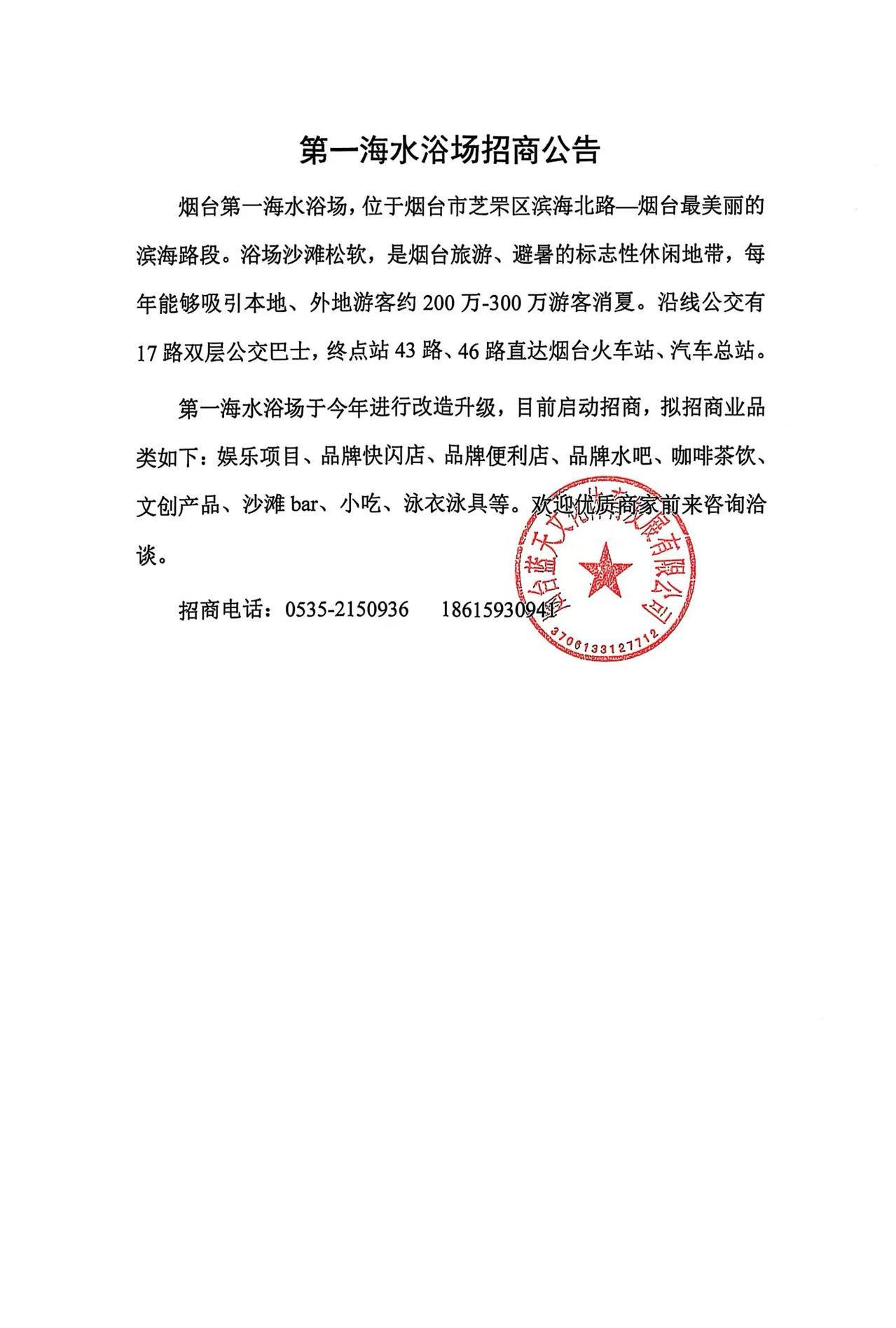 第一海水浴場(chǎng)招商公告