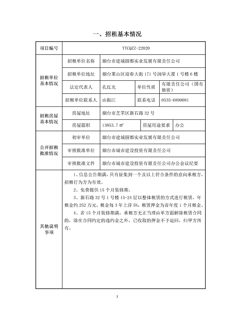煙臺市芝罘區(qū)新石路32號1號辦公樓15-24層房地產(chǎn)招租