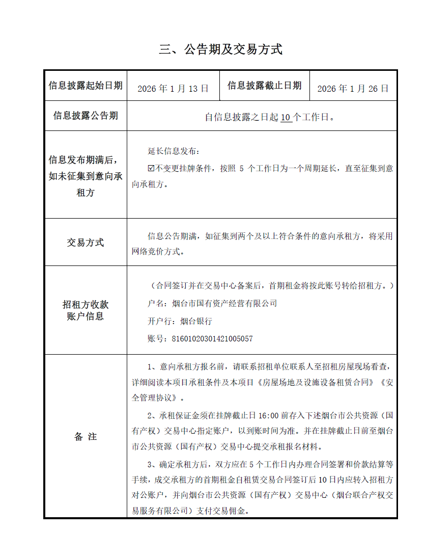 掛牌起止日期:2026年1月13日-2026年2月3日
