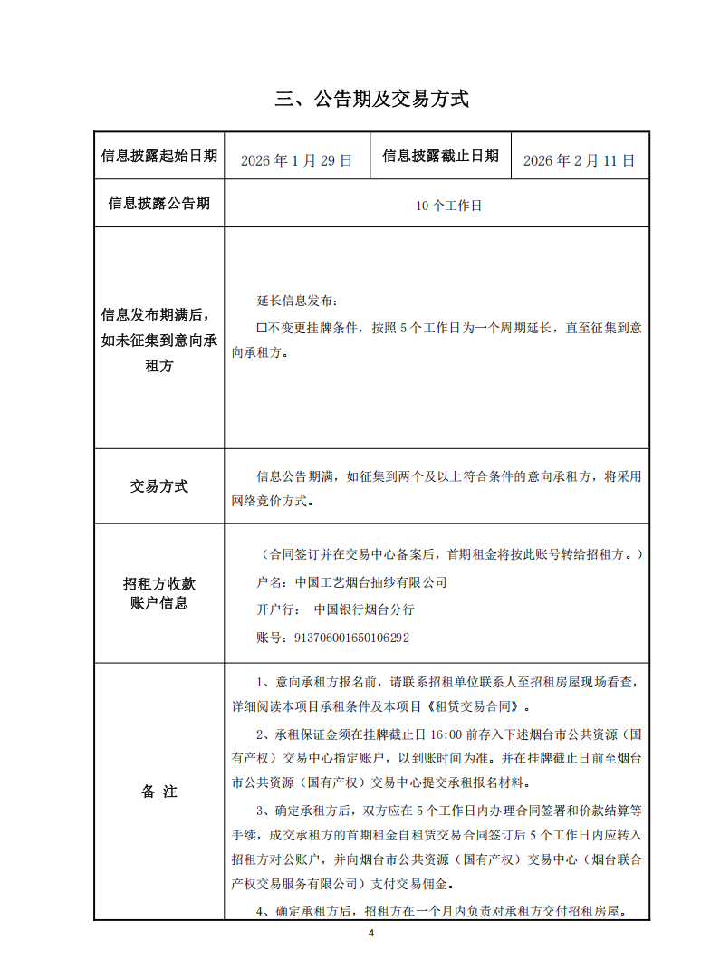 掛牌起止日期:2026年1月29日-2026年2月11日