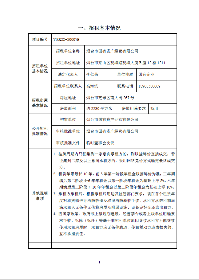煙臺(tái)市南大街267號(hào)1-7層(除一樓東側(cè)門頭房)、東側(cè)停車場招租公告